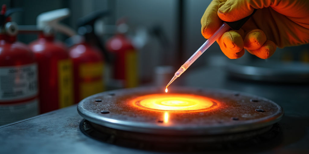 - Универсальное правило: Имейте в зоне доступности огнетушитель класса B (для пожаров горючих жидкостей). Помните, что водой такие возгорания не тушат — это приведет к растеканию и распространению пламени. Используйте песок, кошму, огнетушащее полотно или специальную пену.