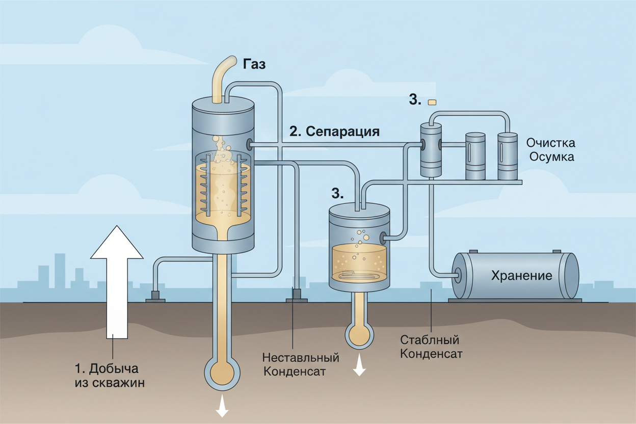 Газовый конденсат — термин, объединяющий легкие фракции углеводородов, которые переходят из газовой в жидкую фазу при извлечении природного газа из недр. Встречается на крупных месторождениях, добывается с применением технологичного оборудования и служит важным сырьем для отечественной и мировой экономики. На конденсатных месторождениях России и СНГ ежегодно производится сотни тысяч тонн этого продукта. Большая часть конденсата перерабатывается на НПЗ, где из него получают бензиновые компоненты, дизельное топливо, растворители и химическое сырье. Для B2C аудитории газовый конденсат выступает основой товарных продуктов, а для B2B — ключевым сырьем для производственных цепочек и экспорта.